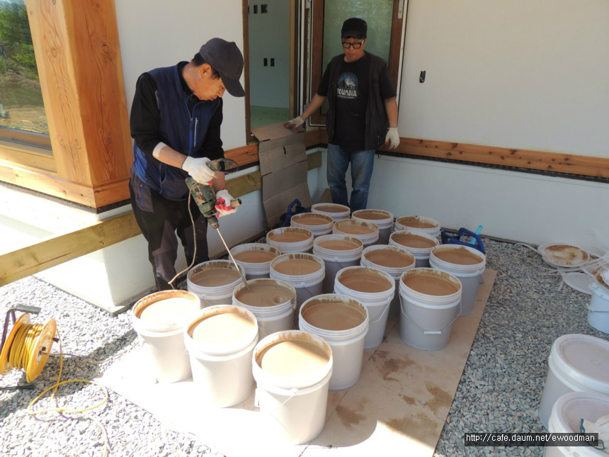 황토 스스로 수평몰탈. 집주인께서 최대한 천연자연재 내부마감을 원하셔서 추가된
