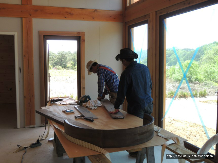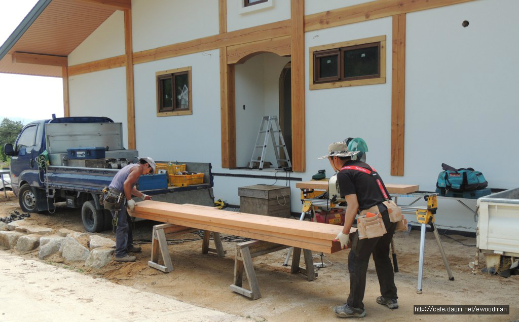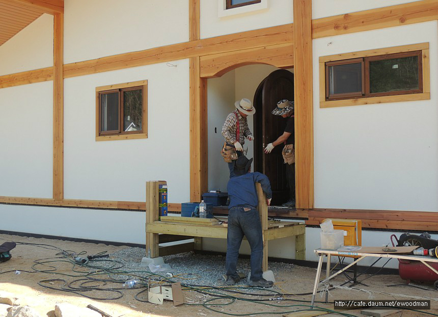 그렇잖아도 손이 많이 가는 통나무집 마감 공정들. 거기에 또 다른 공정이 추가되면