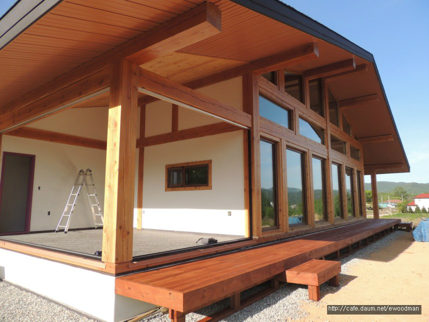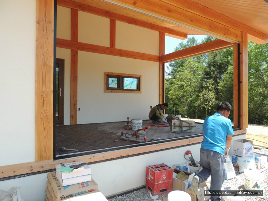 그러니까 일주일 후엔 실내외 핸드레일만 남기고 봉평통나무집 마무리작업 대부분이