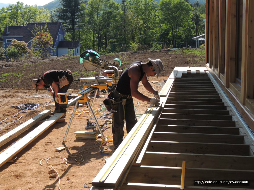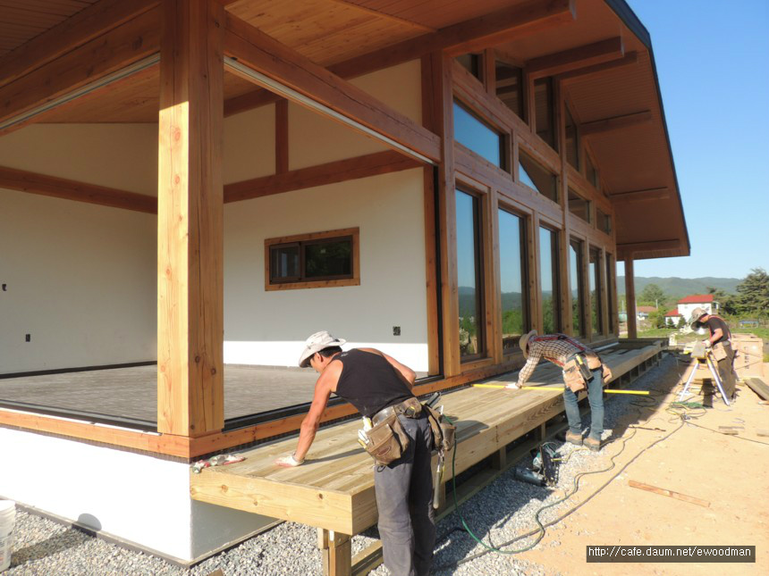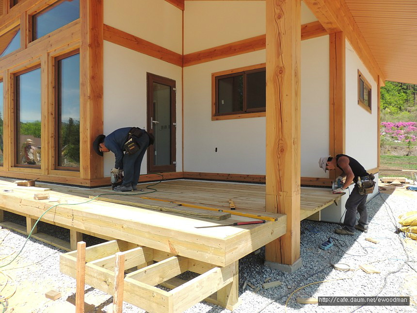 강림통나무집부터 상판 두께를 더 키워 27×140으로 시공합니다.
