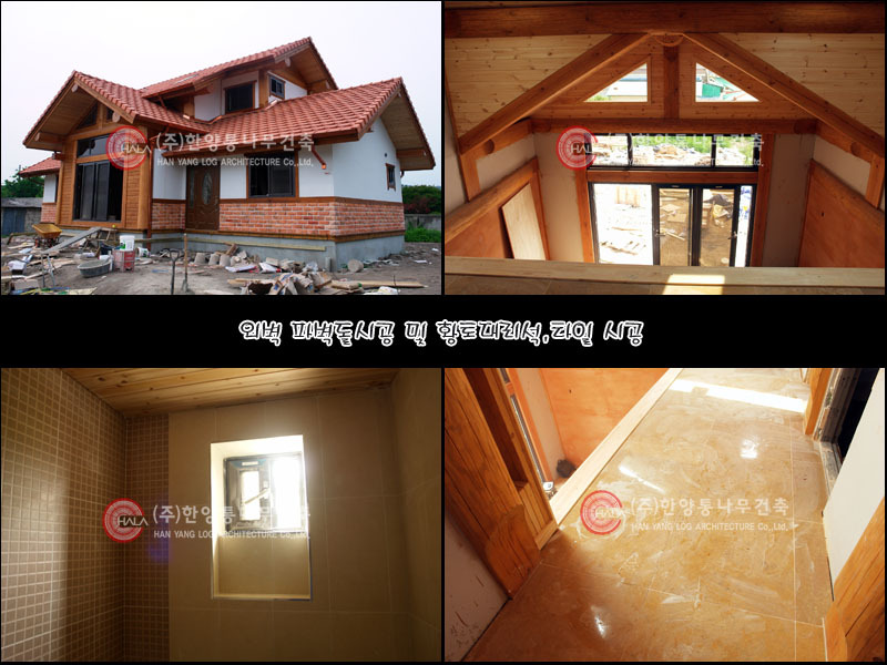ㆍ내부마감: 천장-루바 / 벽-2X4벽체 위 황토벽돌, 한지,루바 / 바닥-횡토대리석, 타일