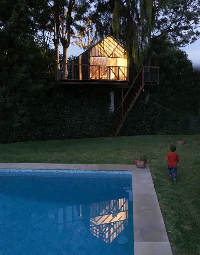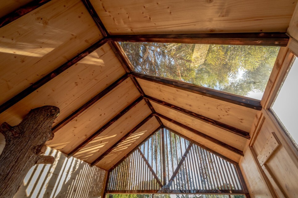 목구조로 소프트하면서 네츌러한 느낌을 자아내는 당연한 트리하우스 연출 구성 뷰 이다.