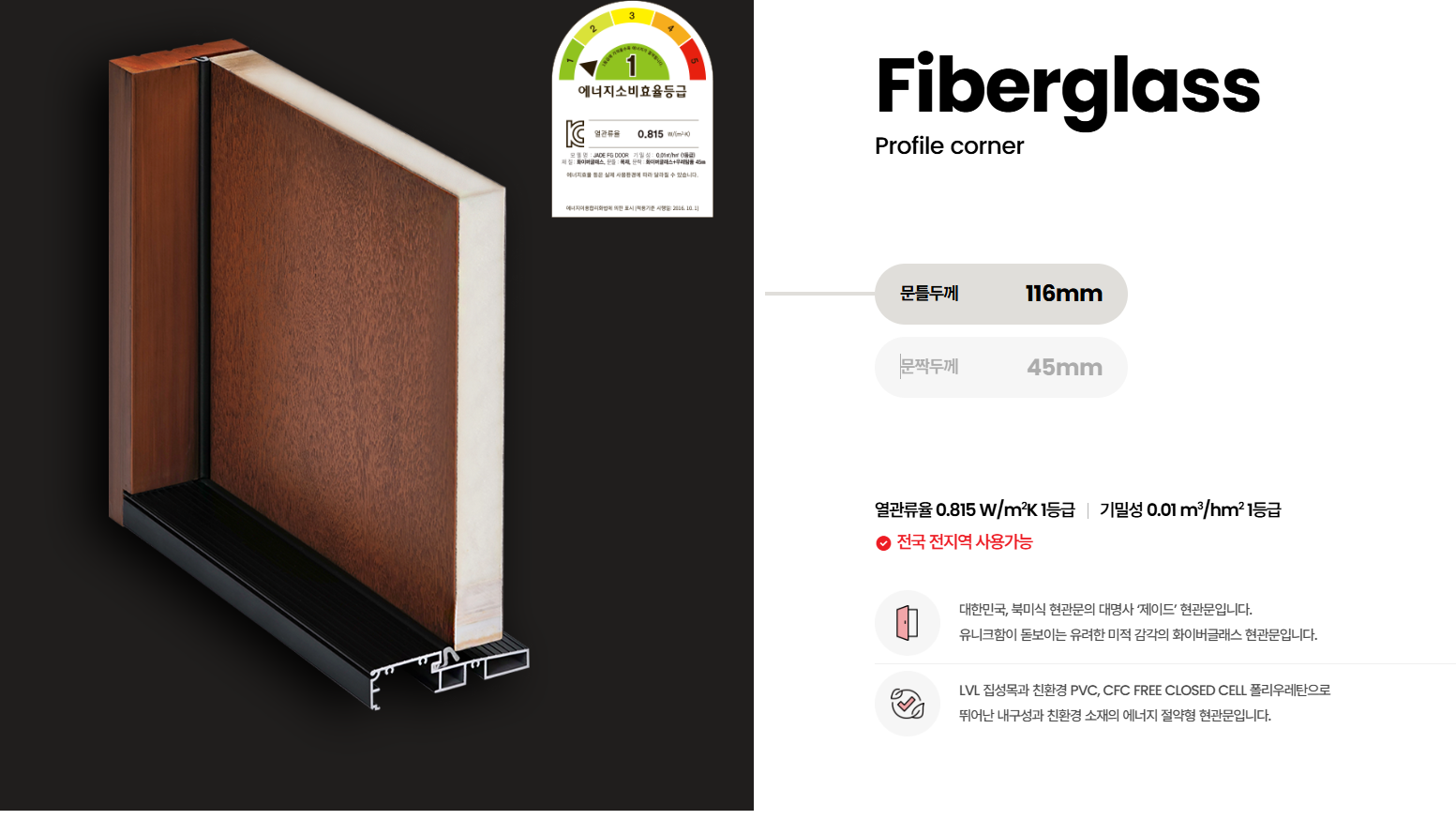 단열·기밀성 1등급! 제이드 도어는 에너지소비효율 1등급, 기밀성 1등급,