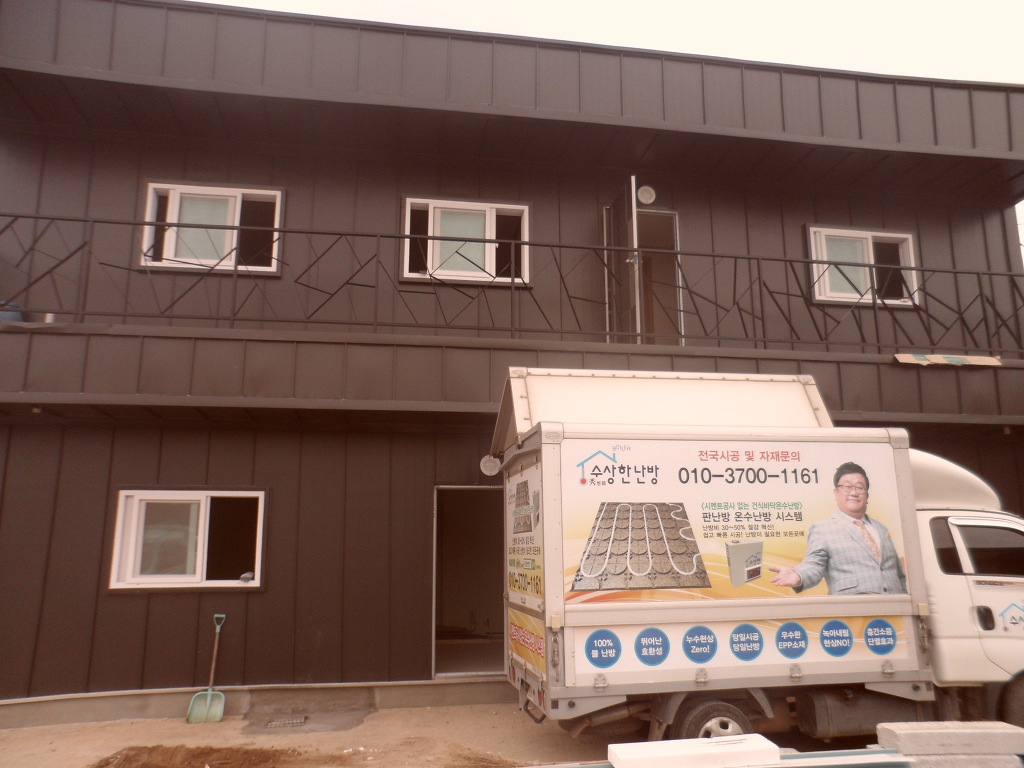 공장의 기숙사에 수상한난방의 건식난방시스템을 적용합니다.
