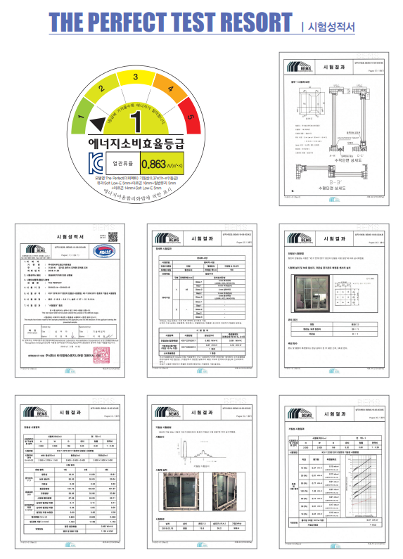 이미지 자료에서도 확인할 수 있듯이 퍼펙트창호는 에너지소비효율등급 1등급,