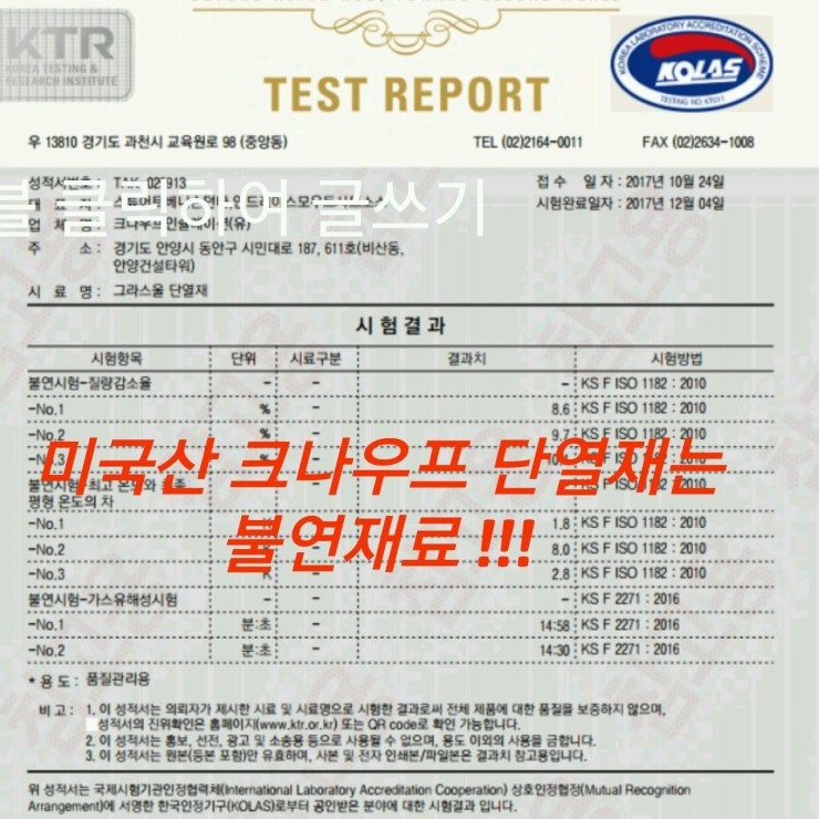 - USA 크나우프 단열재는 불연재료입니다.