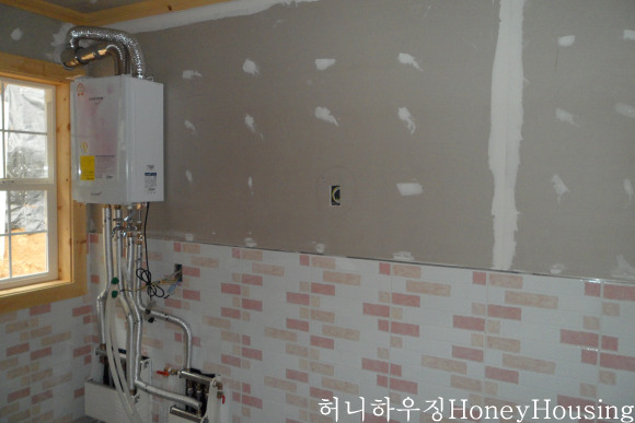 이때에는 타이벡 시공후 쫄대를 대고 시멘트 보드를 시공하고