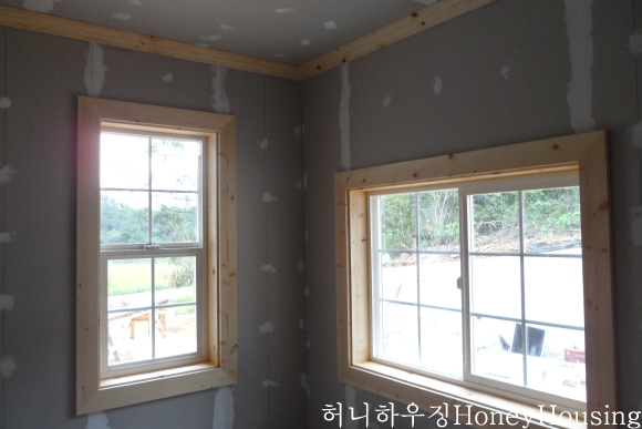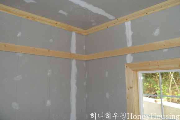 또한 스크류못으로 시공한 후 핸디코트 (석고 하얗게 칠해져 있는부분) 로 메우어 주어야 합니다