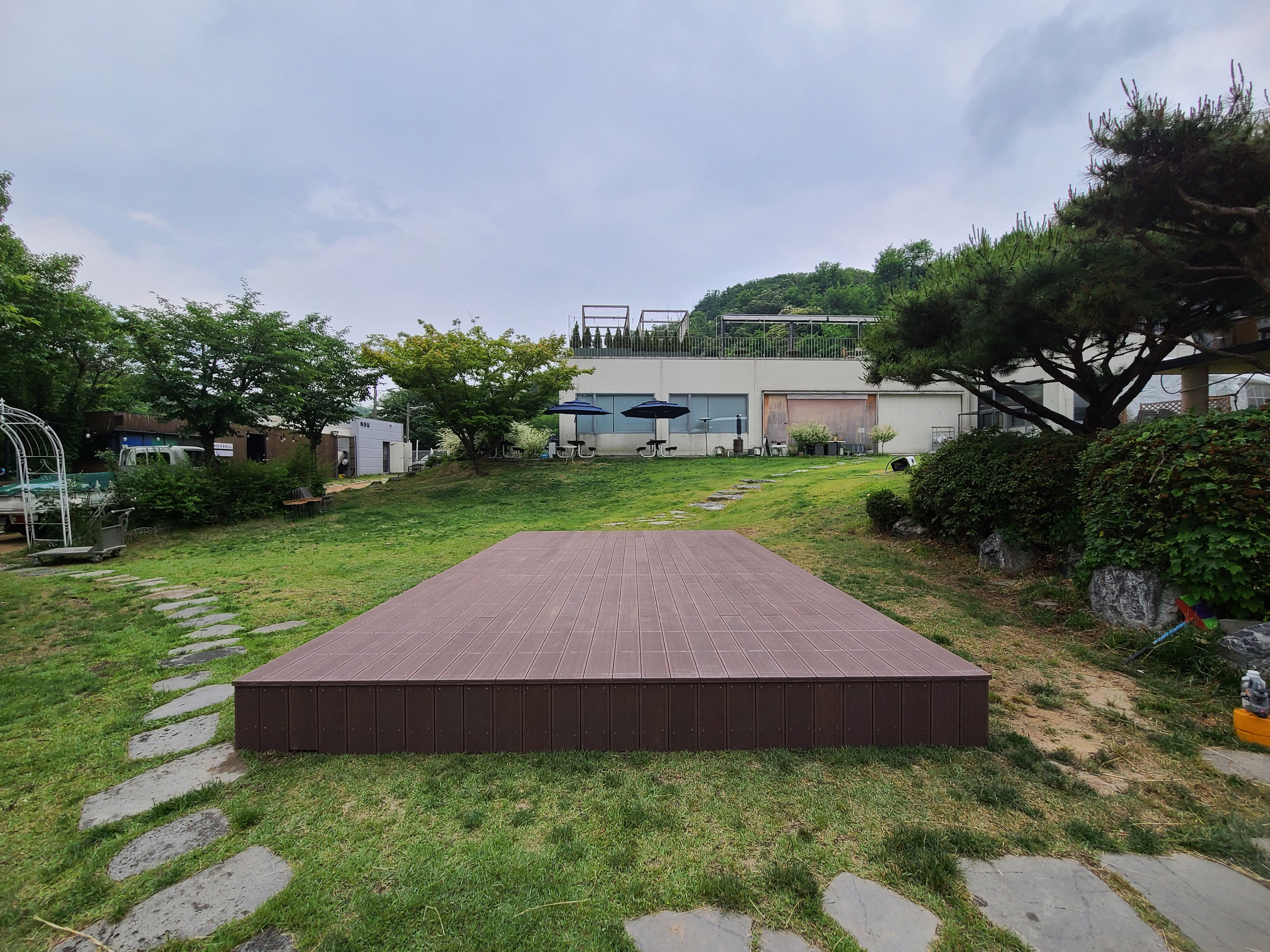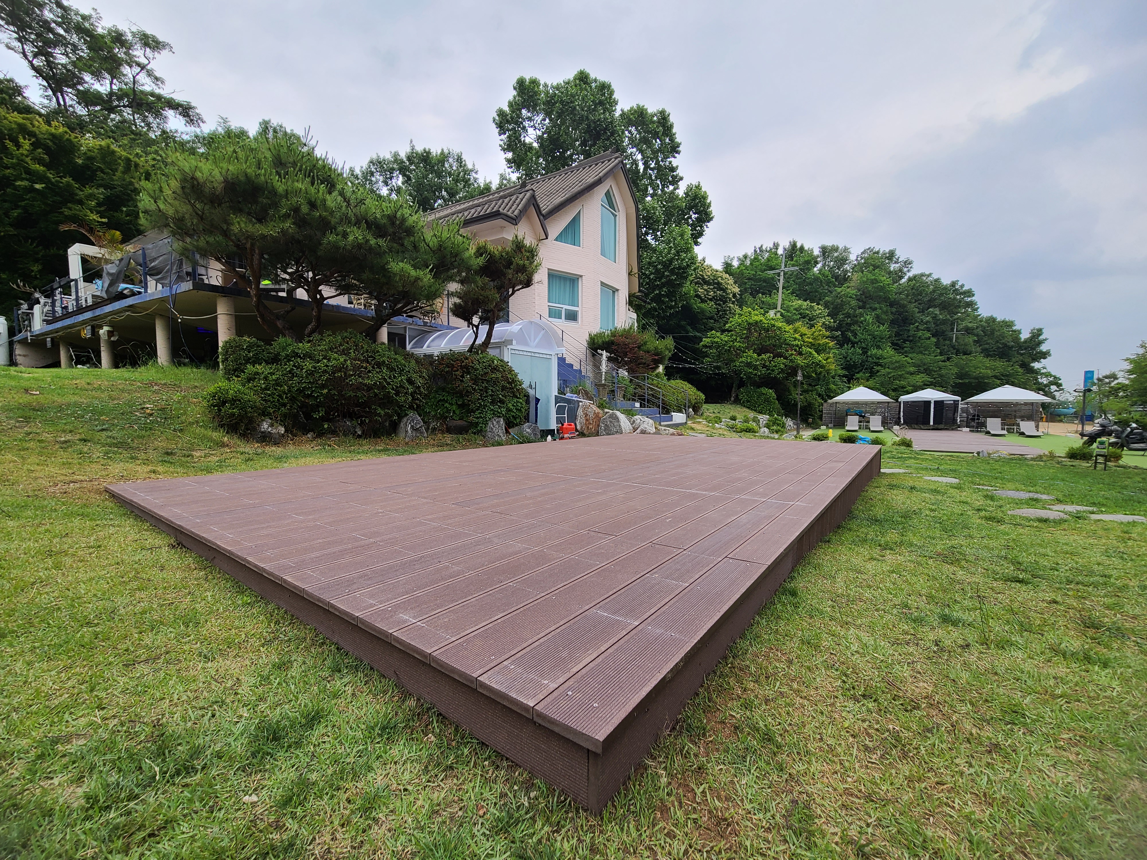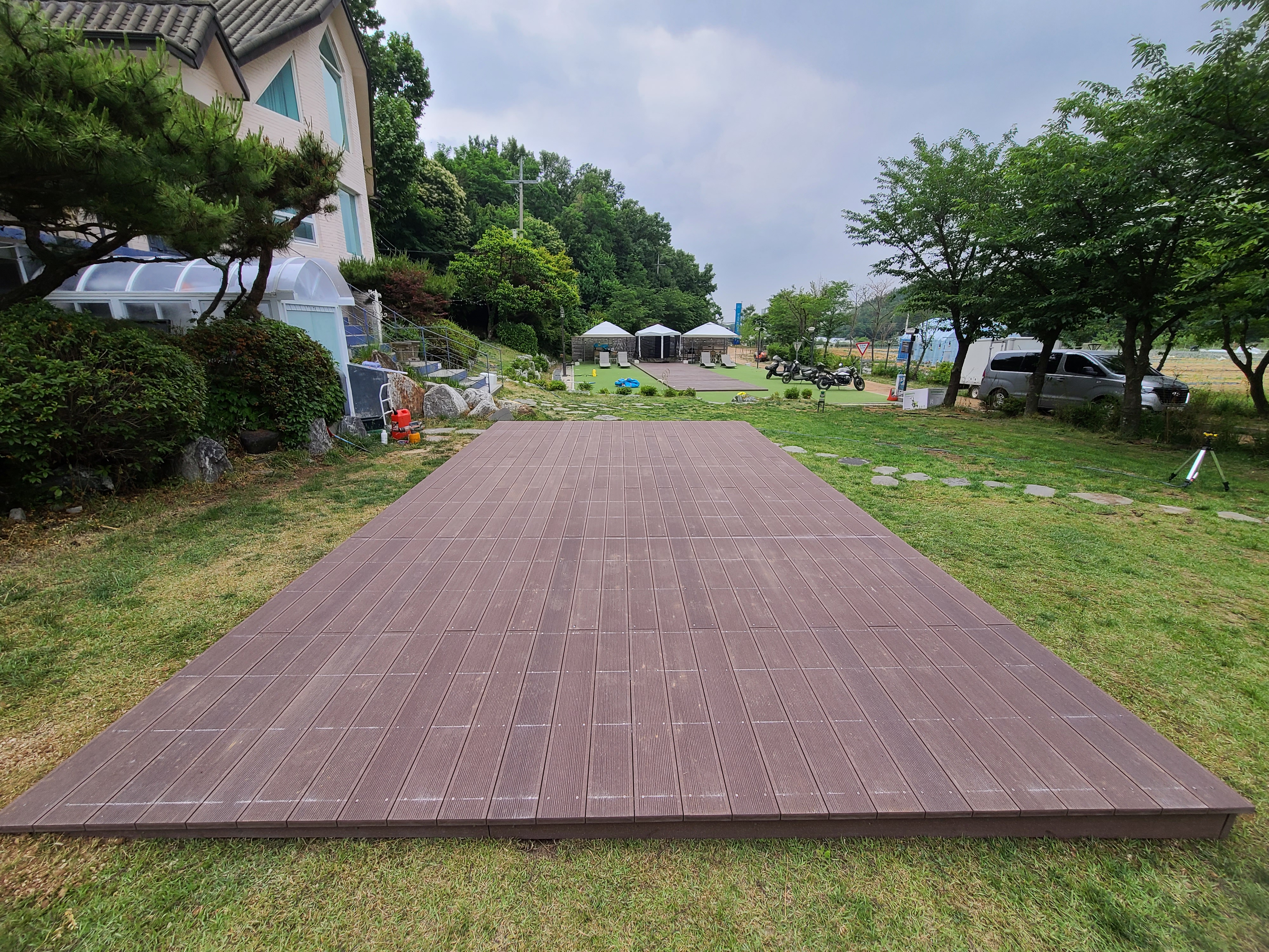 마당데크 시공 현장에 사용한 합성목재는
