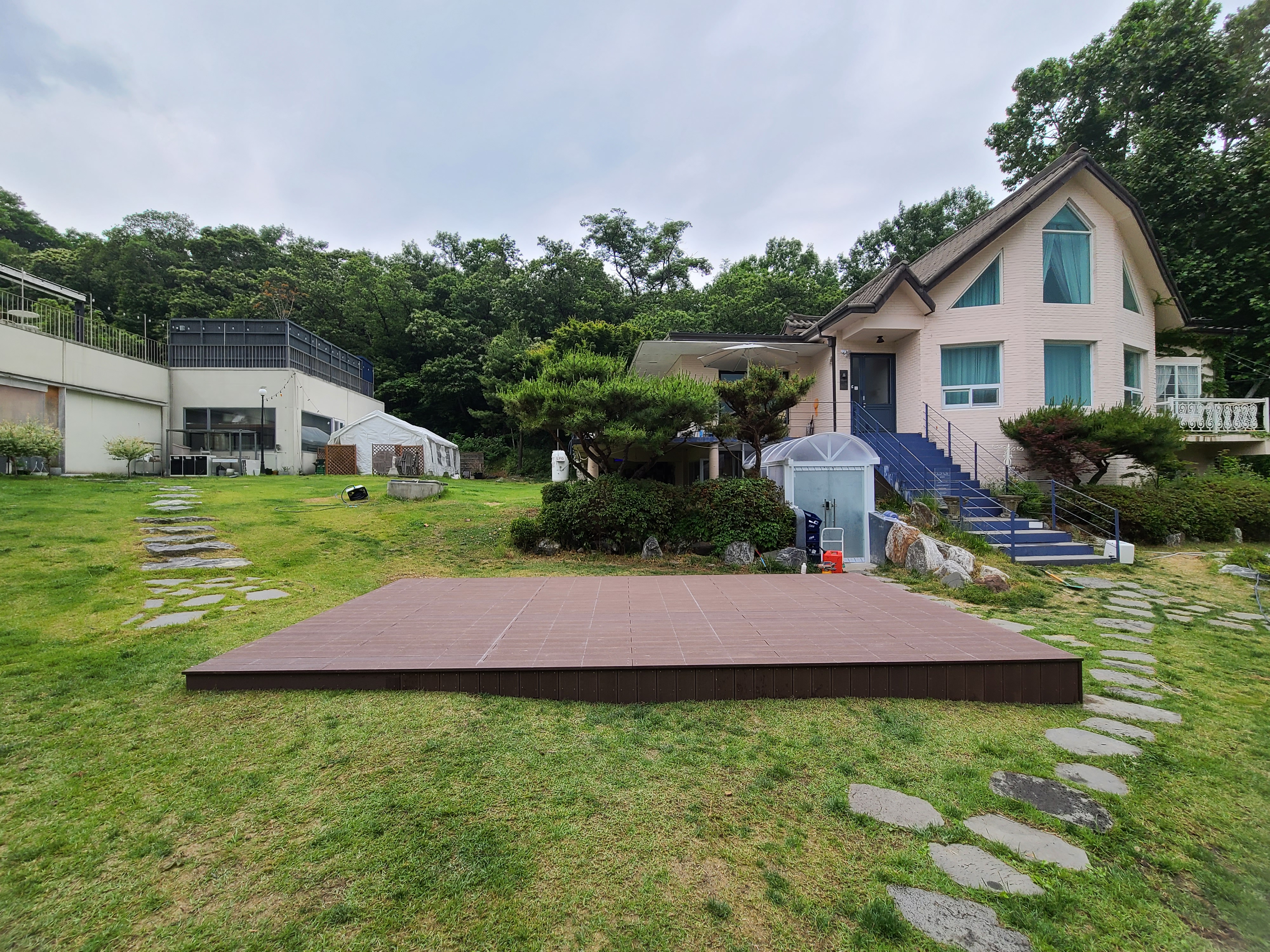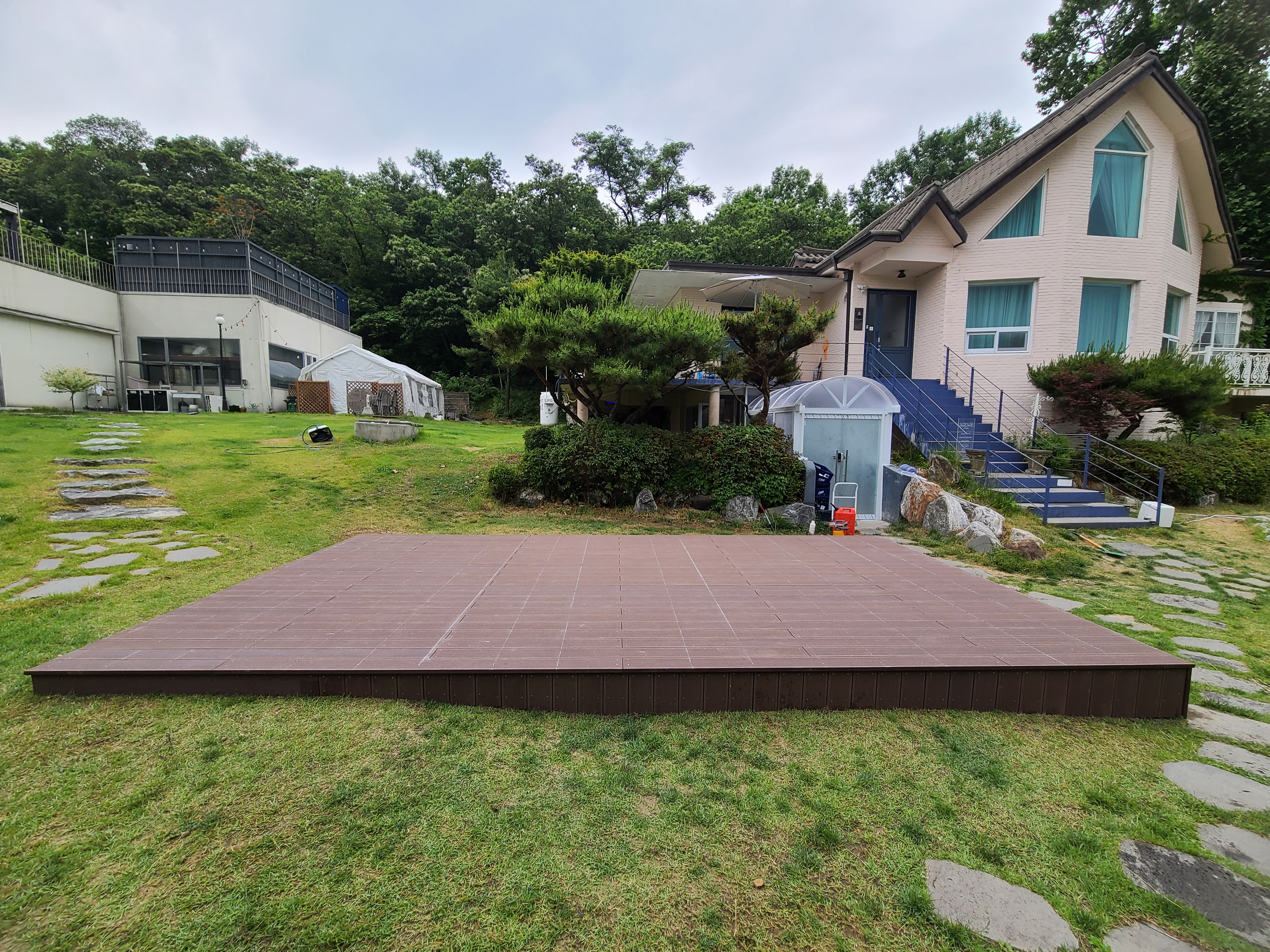 직사각형 모양 마당데크의 윤곽이 드러났고,