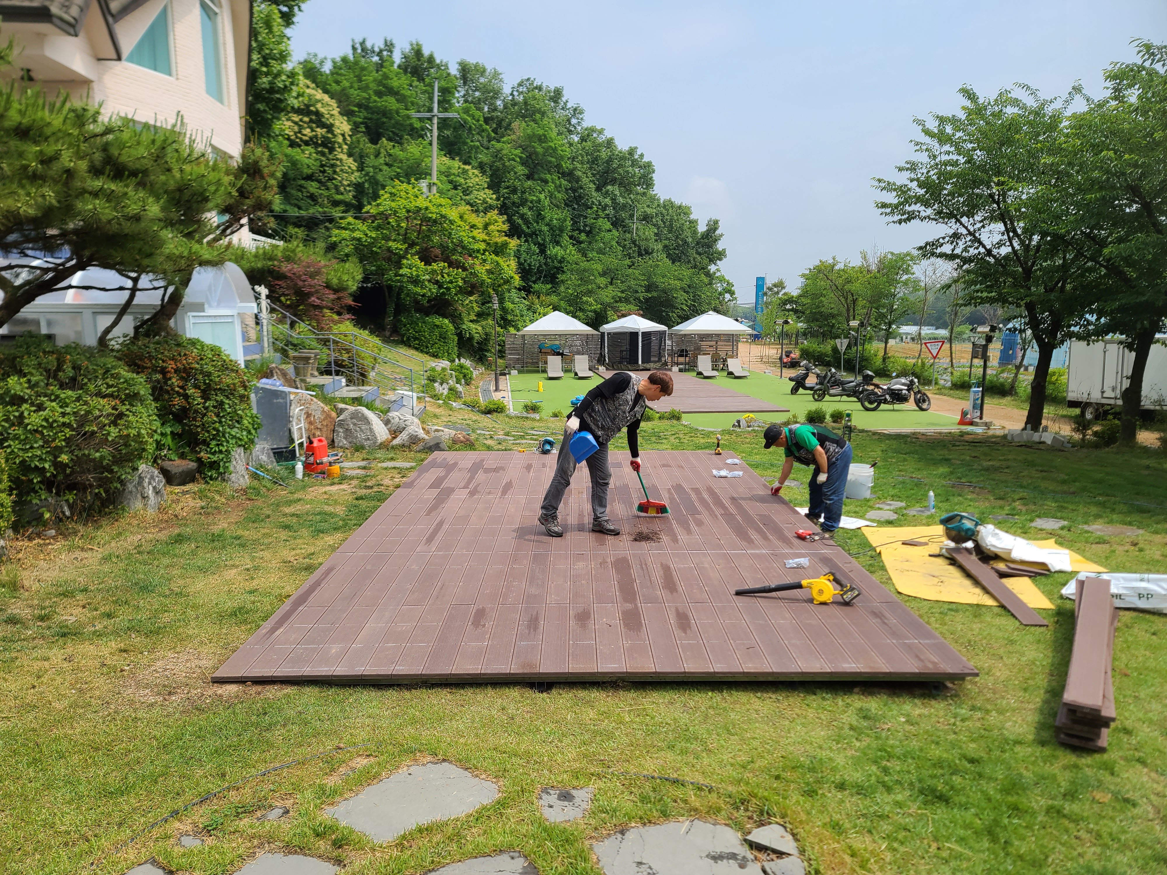 “합성목재로 마당데크 시공하는 과정