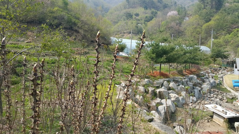 텃밭에는 아로니아 약 200주,두릅나무,엄나무,각종 과일수가 가득하고