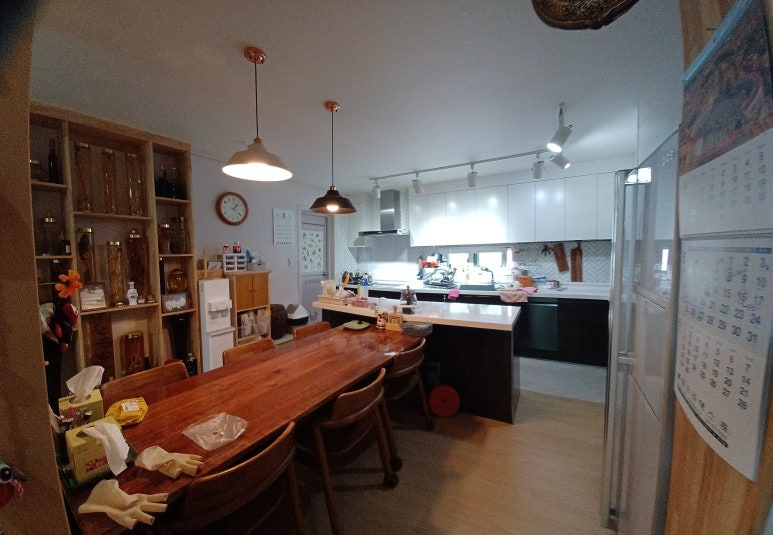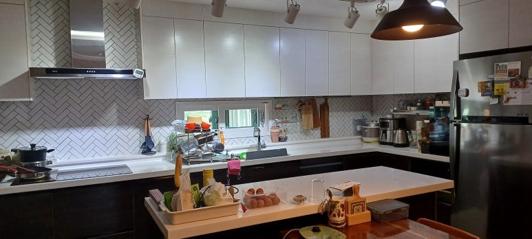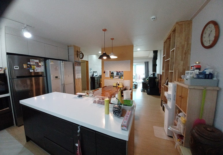 거실과 주방사이에 아트월을 설치하여 공간 분리 효과를 가져다 줍니다