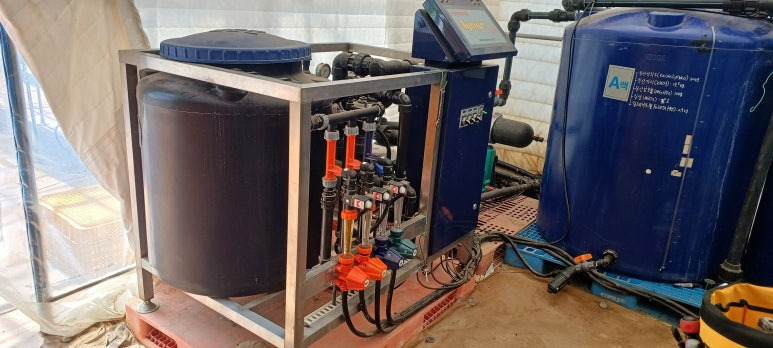 딸기 재배사와 별도 장소에 양액 시설기 , 딸기 재배사 물공급 정수기 시스템이