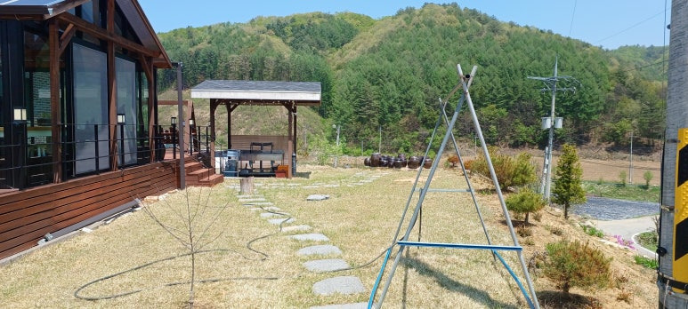 전원주택 데크와 마당에서 조망되는 옛 시골정서 살아 있는 경치에 힐링됩니다