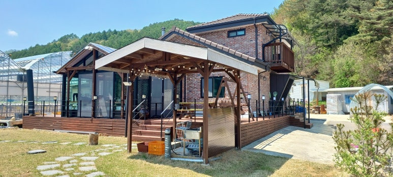 2,000평 완경사 남동향 토지 위 43평 목구조 전원주택과 연매출 1억5천~1억8천 가능한,