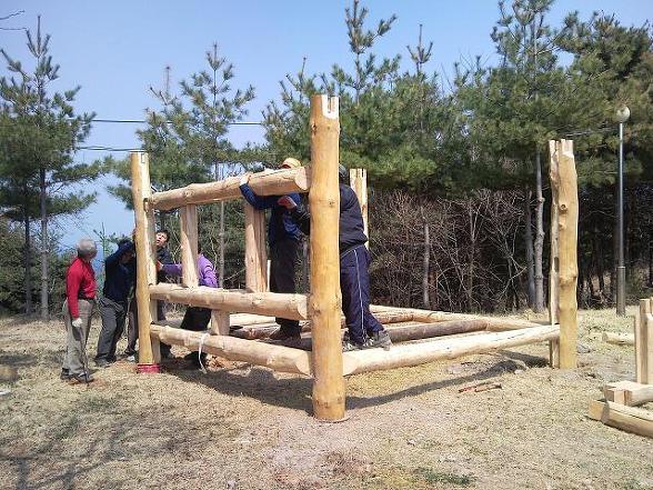 나무가 조금 더 올라가면 가늘어지는데 이 부분은 수평 보를 만들면 되지요..