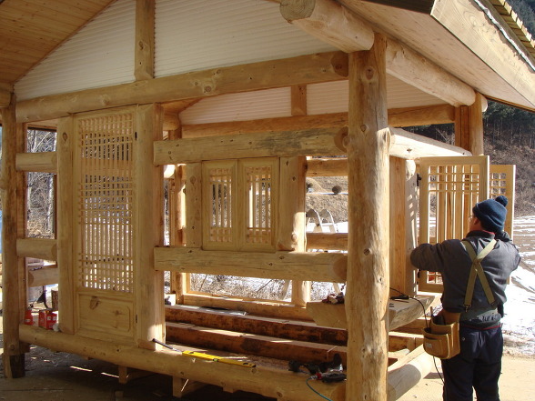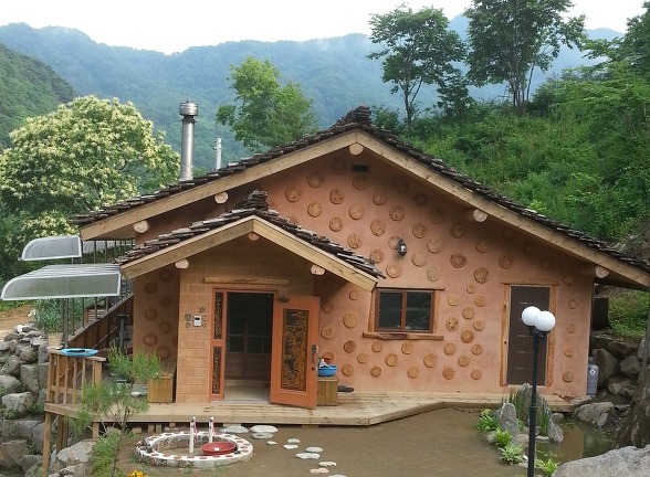 기존의 흙집을 개량해서 벽체의 틈을 줄인 통나무황토집. 퍼온글