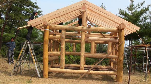기둥과 보 설치가 끝나면 지붕을 하는거지요..