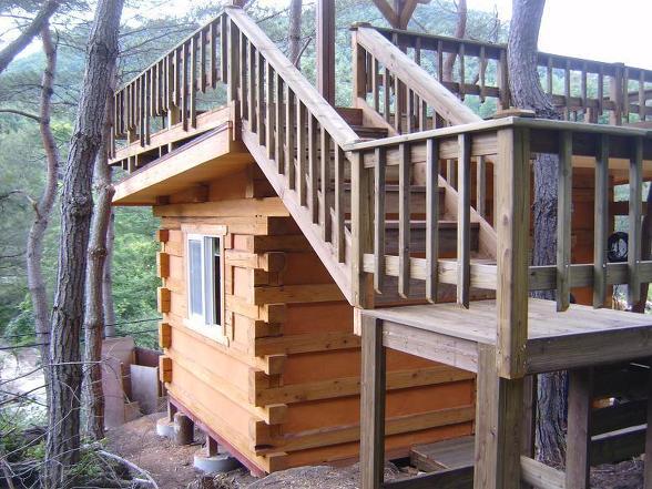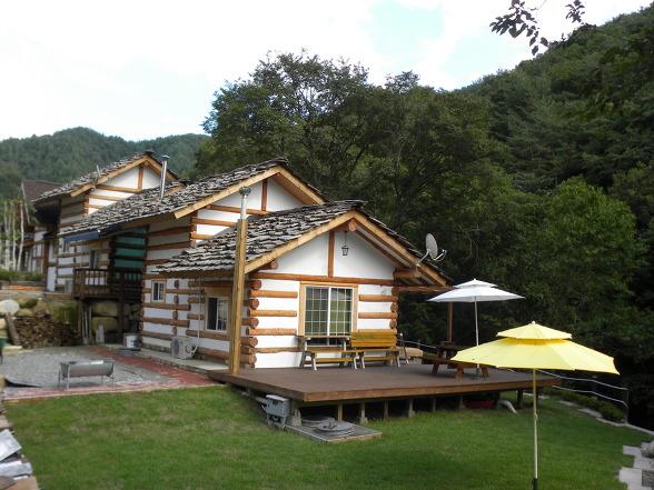 아래사진처럼 다락방이 있는 13평 귀틀집도 모두 국산통나무로 만들었읍니다.