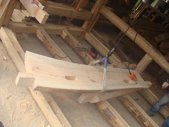 굵고 구부러진 국산소나무 밑둥으로 만드는 창문밑 테이블(젠다이) 만들고,
