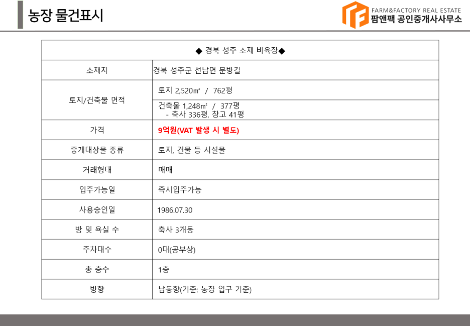축사 전문 부동산 팜앤팩 조태호입니다.