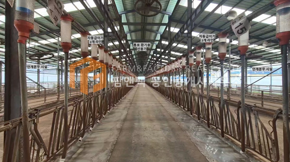 본 매물의 경우 현재 약200두 규모 우사(5x10 사이즈 32칸, 송아지방 13칸 기준)로