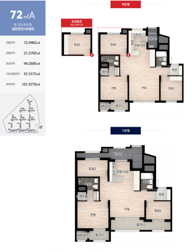 72B타입은 4베이 구조입니다. 72A타입보다는 인기가 있을 거 같네요.