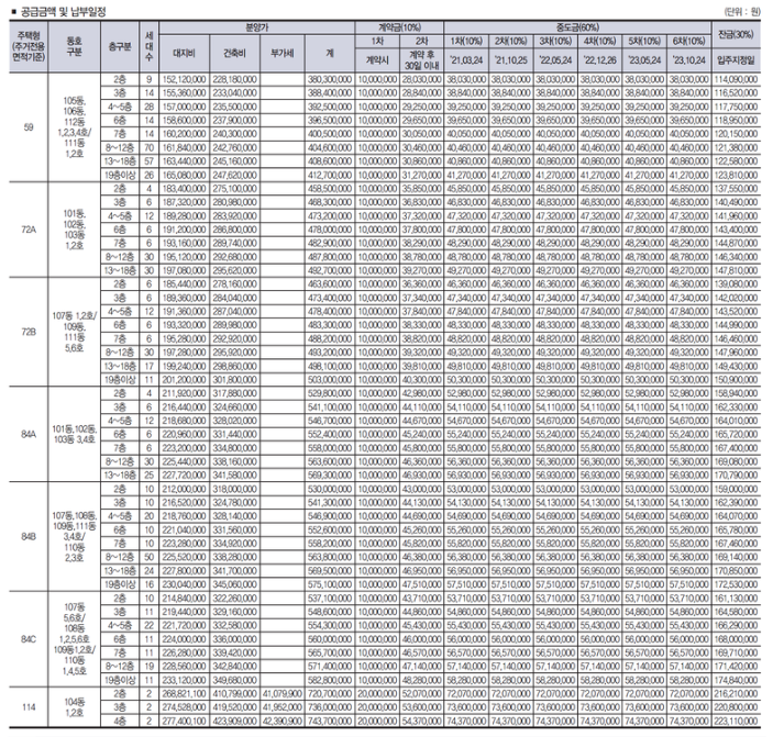 평형대가 59타입에서 114타입까지 다양하게 있어서 인기가