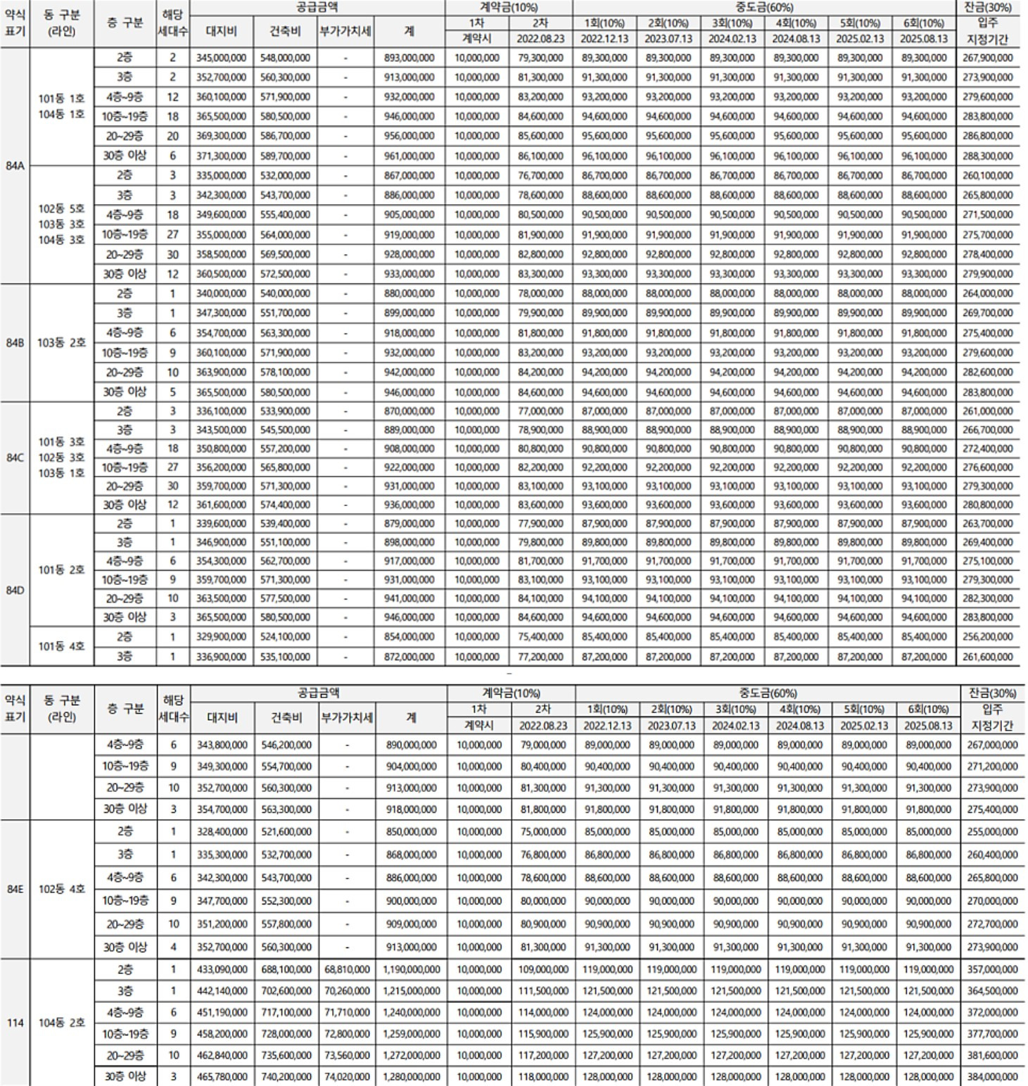 아파트 : 84㎡A·B·C·D·E, 114㎡A