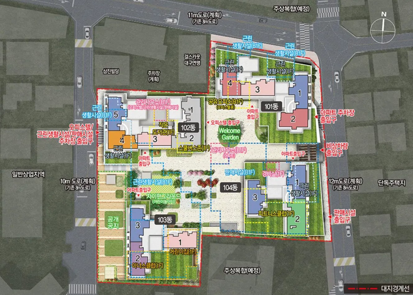 아파트 399세대와 오피스텔 52실, 근린생활시설