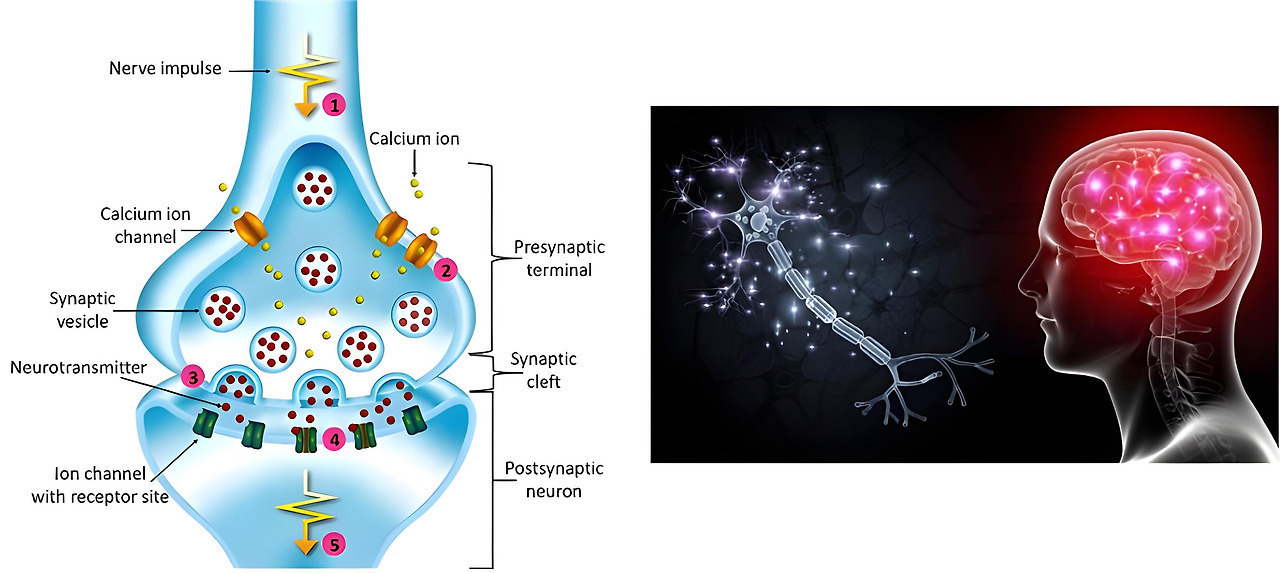 When this action potential reached the synaptic terminals of neurons, voltage-gated calcium (Ca²⁺) channels opened, causing calcium ions to enter the cell. Consequently, synaptic vesicles fused with the cell membrane and released stored neurotransmitters into the synaptic cleft in excessive amounts.