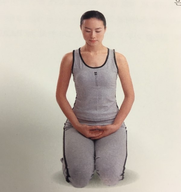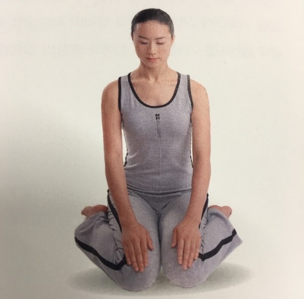 왼쪽 발 뒤꿈치를 회음부(성기와 항문사이)에 대고, 오른쪽 발뒤꿈 치를 성기 위쪽에 댄다.두 팔을 펴서 손을 무릎 위에 놓은 다음 엄지와 인지를 가볍게 붙인다. 허리를 펴고 턱을 당기며 시선은 미간을 응시한다.