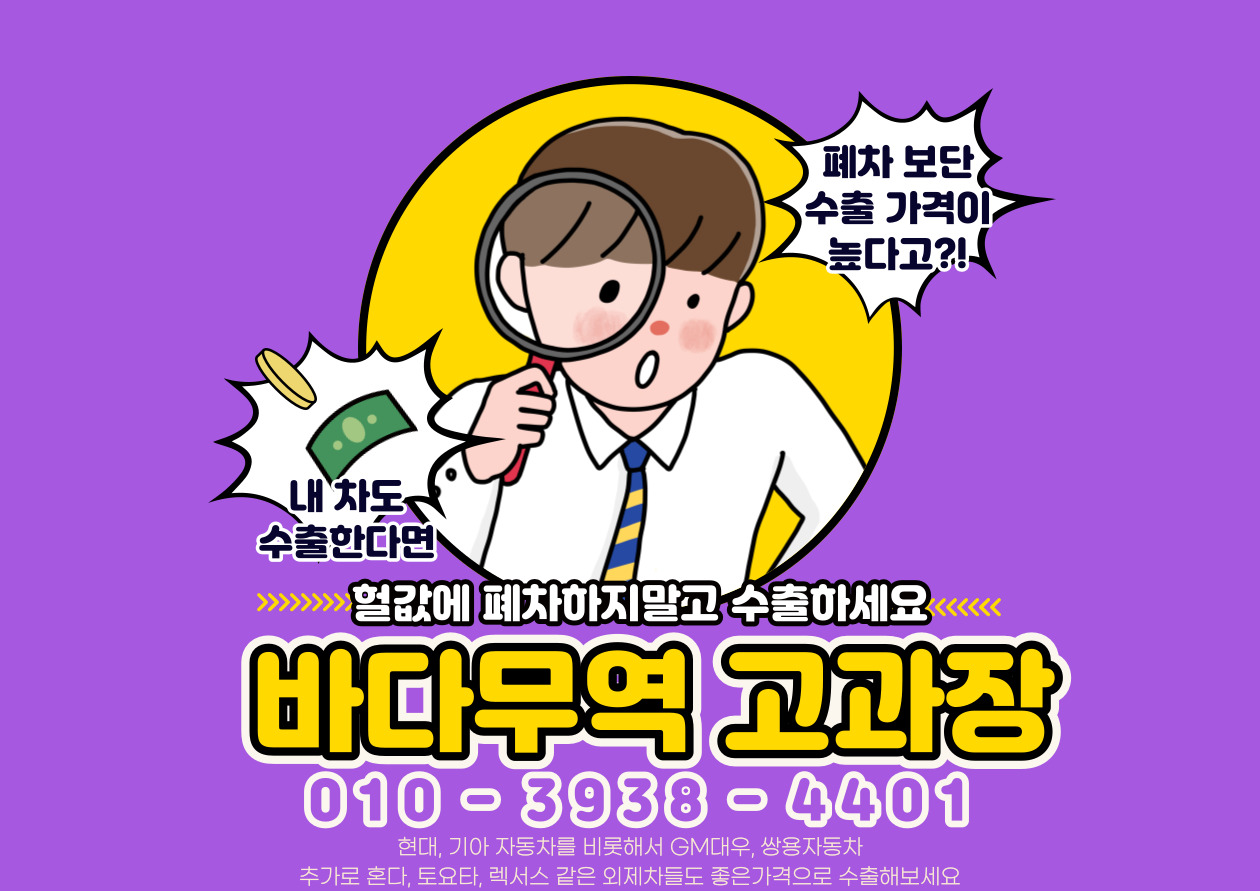 안녕하세요 중고차 폐차와 수출업에 종사하고 있는 바다무역의 고범수 과장입니다.