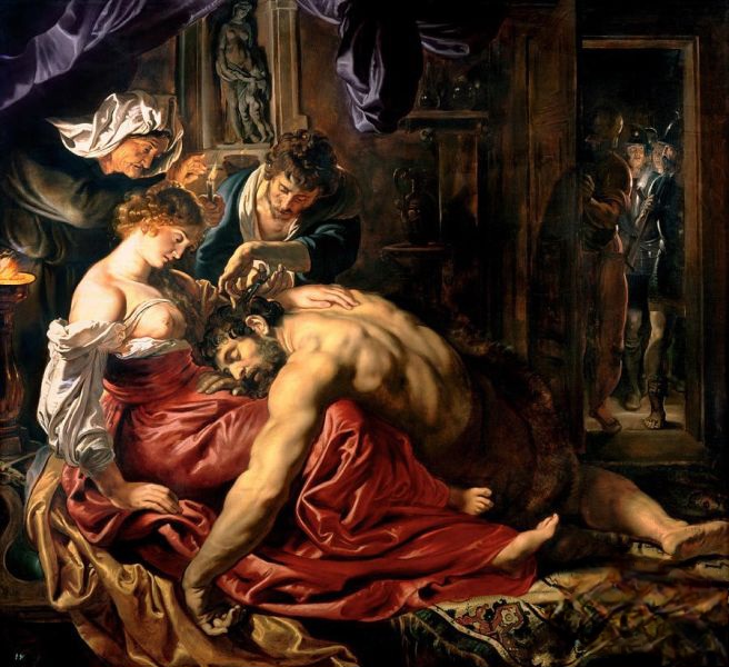 벨기에 출신으로 루벤스 이후 가장 뛰어난 17세기 플랑드르 화가 "안토니 반 다이크(1599 ~ 1641, Anthony Van Dyck)"의 1611년 작품 "삼손과 데릴라". 이 그림은 성경에 나오는 이야기를 그린 그림으로 데릴라가 삼손 몰래 머리카락을 자르려고 하는 장면을 그린 것이다. 화가 "안토니 반 다이크"는 루벤스의 공방 출신으로 바로크 시대 최고의 초상화가 중 한 명이다. 영국 국왕 "찰스 1세"의 궁중 화가로 활동했던 그는 매우 우아하고 기품 있는 초상화로 많은 사랑을 받았다. 찰스1세는 궁정화가로 데려오기 위해 고액의 연봉, 템즈강변의 저택과 왕궁까지 오가기 쉽게 집 앞에 부두까지 만들어 주었다. 반 다이크가 1633년 그린 찰스 1세 기마 초상이 유명하다.