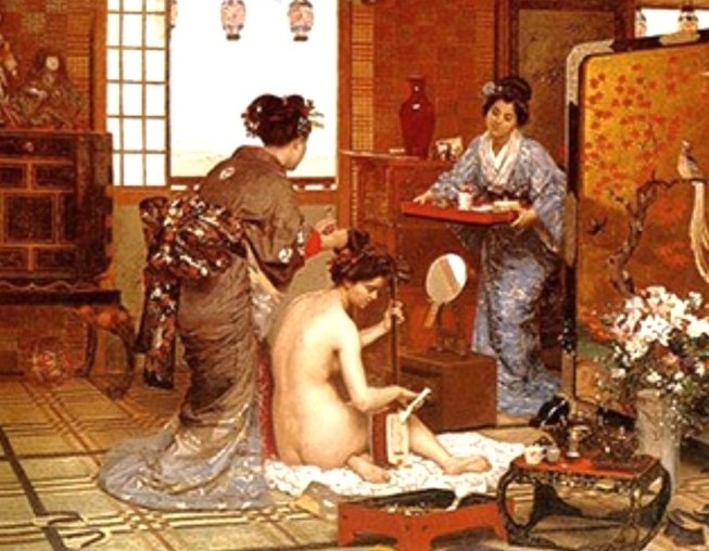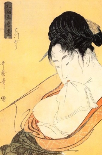 일본 에도시대 후기 우키요에 화가이며 풍속화가 "기타가와 우타마로(1753 ~ 1806)"의 1790년 우키요에 작품 "게이샤". 우키요에는 에도시대 서민들의 삶을 그린 목판화이며 우타마로는 미인화의 명수로 알려져 있다. 일본이 개항을 하면서 우키요에는 18세기 모네, 고흐 등 유럽의 화가들에게 영향을 주었다.