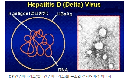 델타간염바이러스는 지름이 35~37 밖에 되지 않은 아주 작은 구형의 바이러스로 외가닥 나선모양의 RNA 바이러스입니다.