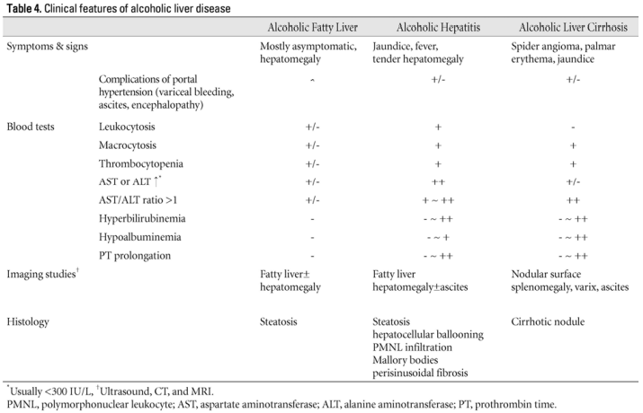 알코올 간질환의 분류 및 임상양상