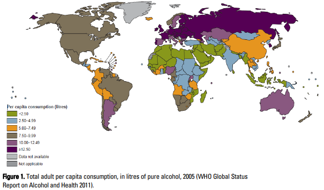 음주(alcohol consumption)는 질병(disease)과 신체장애(disability)의 전세계적으로 3번째 큰 위험요인으로 매년 2백 50만명이 음주로 인해 사망하여, 모든 사망 원인의 4%를 차지한다. 간경변증과 간세포암종(이하 간세포암)을 포함하는 알코올 간질환(alcoholic liver disease)은 알코올에 의한 사망의 약 25%를 차지하여, 일반대중에서 알코올 간질환이 중요한 문제임을 시사한다. 음주로 인한 사망은 1인당 알코올 소비량(per capita alcohol consumption)과 비례한다. 유럽의 한 연구에 의하면 1인당 알코올 소비량이 1 L 증가할 때 간경변증이 남성에서는 14%, 여성에서는 8% 증가하였다.