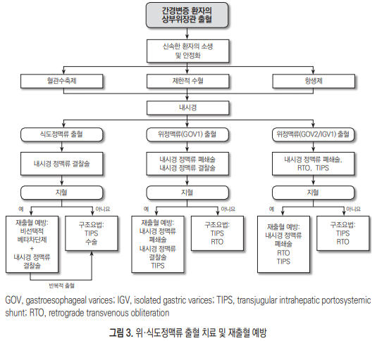 1. 식도정맥류의 발생의 예방을 위해 간경변증의 원인 간질환에 대한 적극적인 치료를 권장 한다. (A1)