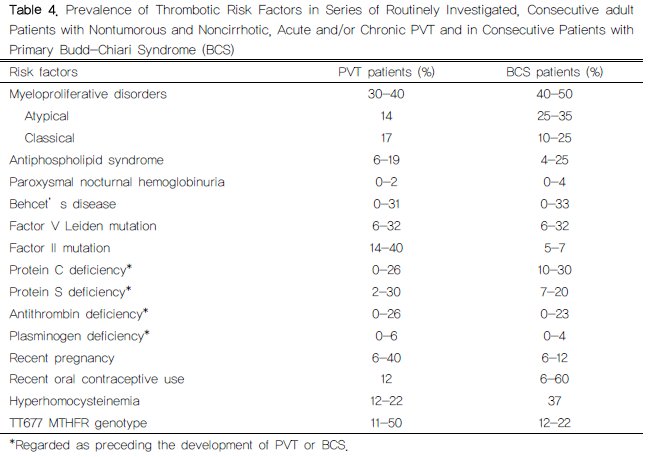 (b) 간질환이 혈전 위험인자가 있는 환자에서 발생한 경우;