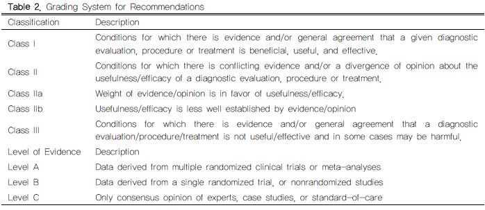 9. 침습적인 진단법을 결정할 때는, 요오드화 조영제의 잠재적인 신독성과 침습적인 시술 후 재빠른 항응고요법과 혹은 내과적 혈전용해술을 고려해야한다(Class I, Level C).
