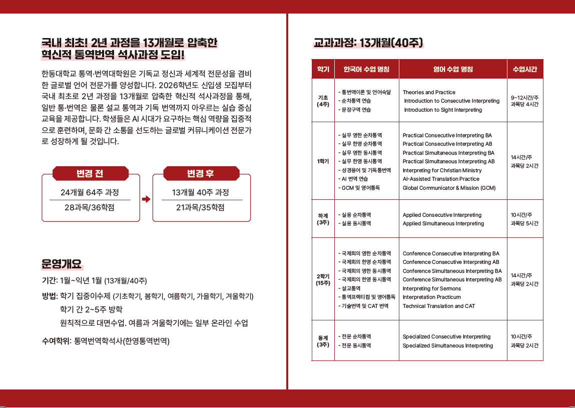 2026년 전기부터 1년 석사과정이 시작됩니다.
