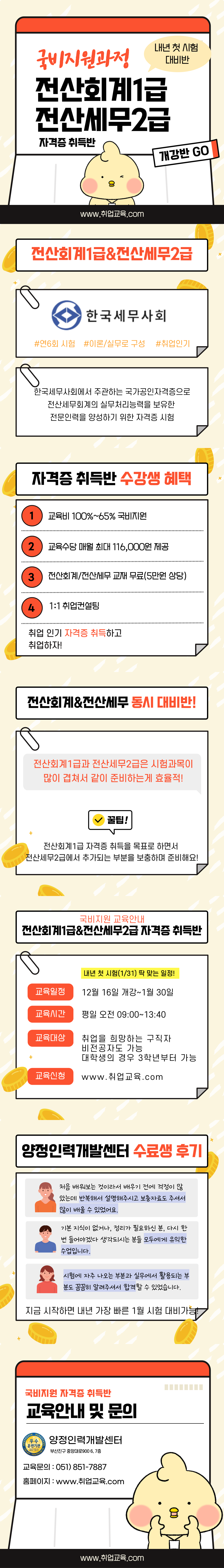 📢 회계사무원 양성(전산회계&전산세무 자격증 취득)
