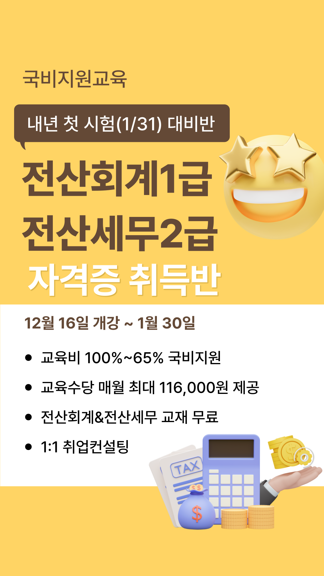 [국비지원] 전산회계1급&전산세무2급 자격증 대비반 (내년 첫시험 대비)