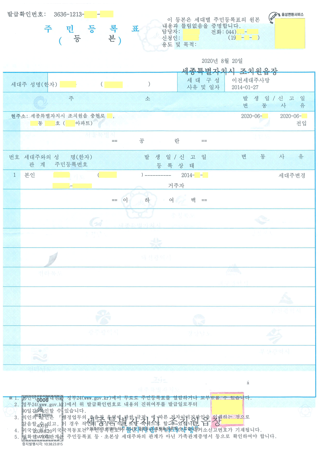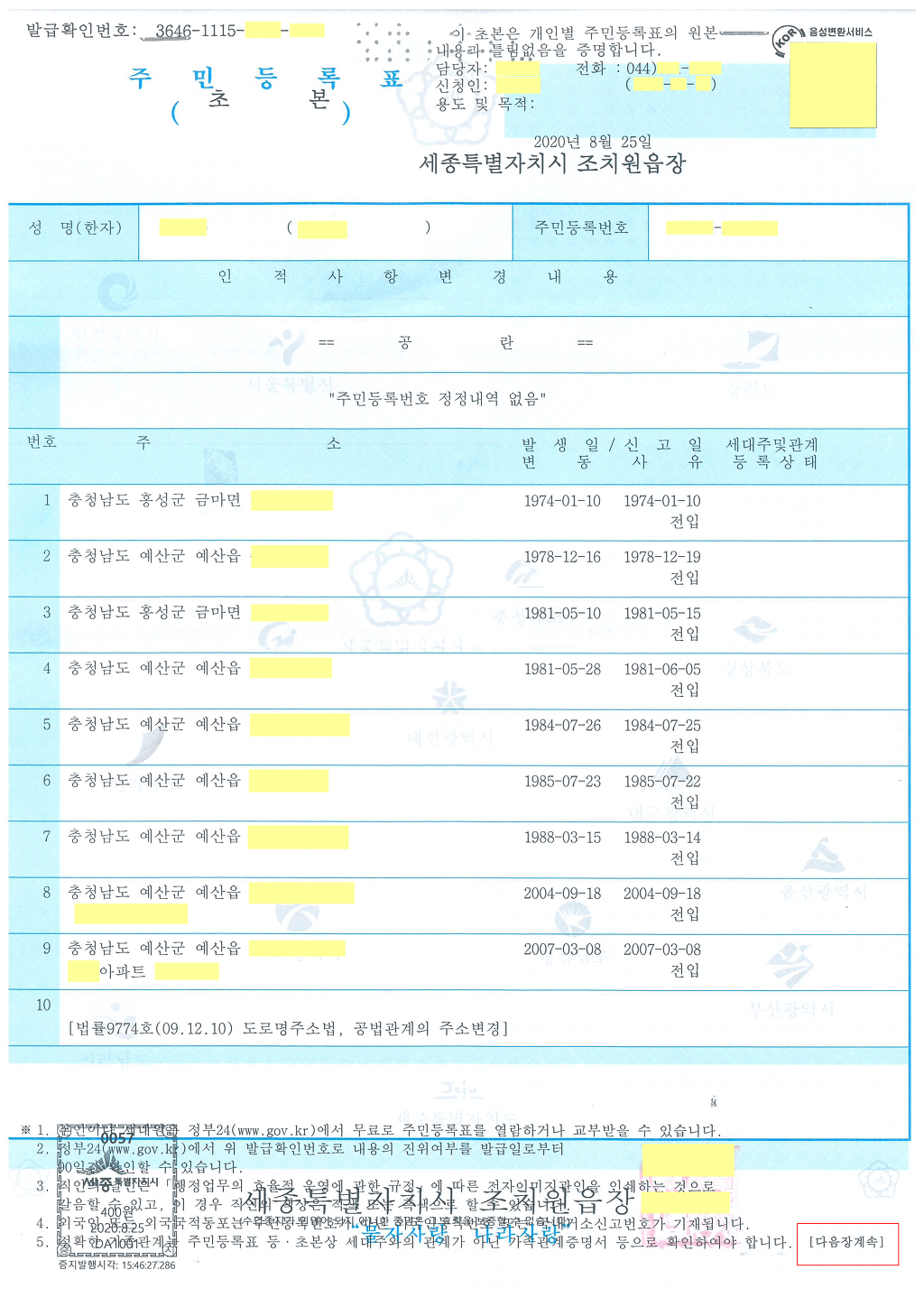 매수인은 매입주택으로 이사가는 경우 주소이전후 주민등록초본(주소변동사항포함) 발급