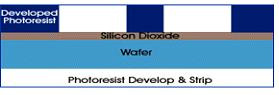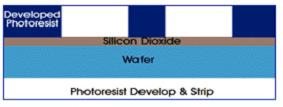 노출공정 이후에 웨이퍼 위의 포토레지스트의 노출된 부분들은 산으로 혹은 기본 용액 등으로 제거된다. 노출된 광막이 제거된 후에 남아있는 광막을 굳히기 위해서 웨이퍼를 낮은 온도(80도~100도)에서 굽는다. 또한 높은 온도(800도~1200도)에서의 확산로는 재분포를 위해 사용됩니다. 확산이라는 것은 웨이퍼의 표면에 도펀트 층을 적용하는 것을 말한다.