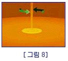 NECKING[그림8]이란 SINGLE CRYSTAL에 결함이 발생하지 않도록 SEED를 따라 성장하는 CRYSTAL의 직경을 최대한 줄이면서 끌어올리는 작업을 말한다.
