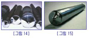 -. 실리콘 원석 → 결정 성장로 → 석영도가니 → 결정 성장 → 정봉(Ingot) → 결합 시험