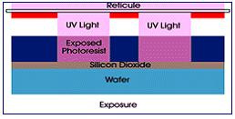 이러한 공정은 일반적으로 'Stepper'라는 공정을 이용한다. stepper는 포토레지스트로 코팅된 웨이퍼에 하나의 소자층의 이미지를 가진 reticle을 통해 단파 UV light로 노출시킨다.